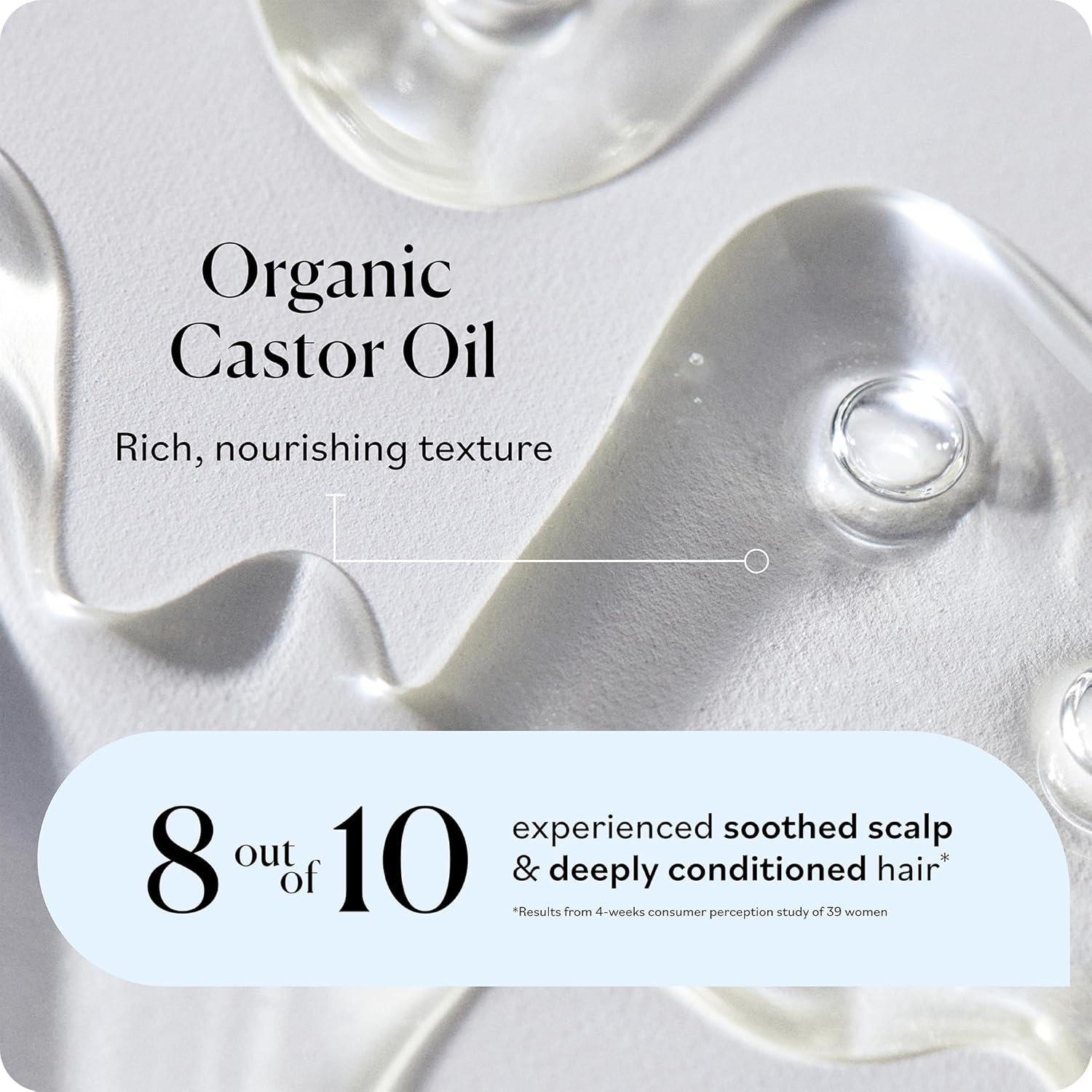 • Olio di ricino biologico – Ricco di acidi grassi Omega, questo olio puro al 100%, spremuto a freddo, biologico e privo di esano nutre e condiziona naturalmente il cuoio capelluto, le radici e le ciocche.